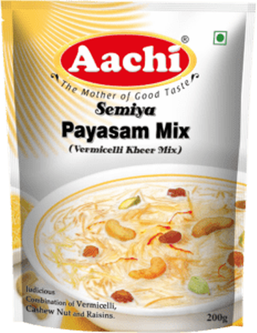 Aachi Payasam Mix is a pre-packaged mix used to prepare payasam, a traditional South Indian dessert. This mix typically contains a blend of ingredients such as roasted semolina (rava), sugar, milk solids, and flavorings like cardamom and saffron. To prepare payasam using Aachi Payasam Mix, you simply need to add the mix to boiling water or milk, simmer until thickened, and then optionally garnish with nuts or dry fruits. The result is a rich, creamy pudding-like dessert with a fragrant aroma and sweet taste, perfect for serving on festive occasions or as a sweet treat.