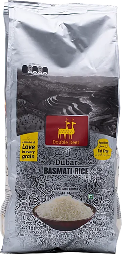 Double Deer Basmati Dehraduni is a variety of basmati rice cultivated in the Dehradun region of India. It is known for its long, slender grains, delicate aroma, and distinctive flavor. Double Deer Basmati Dehraduni rice is prized for its quality and is commonly used in Indian and Middle Eastern cuisines, especially for preparing biryanis, pilafs, and other rice-based dishes. It is favored for its fluffy texture and ability to absorb flavors well during cooking. This variety of basmati rice is often considered premium and is preferred by discerning consumers for its superior taste and fragrance.