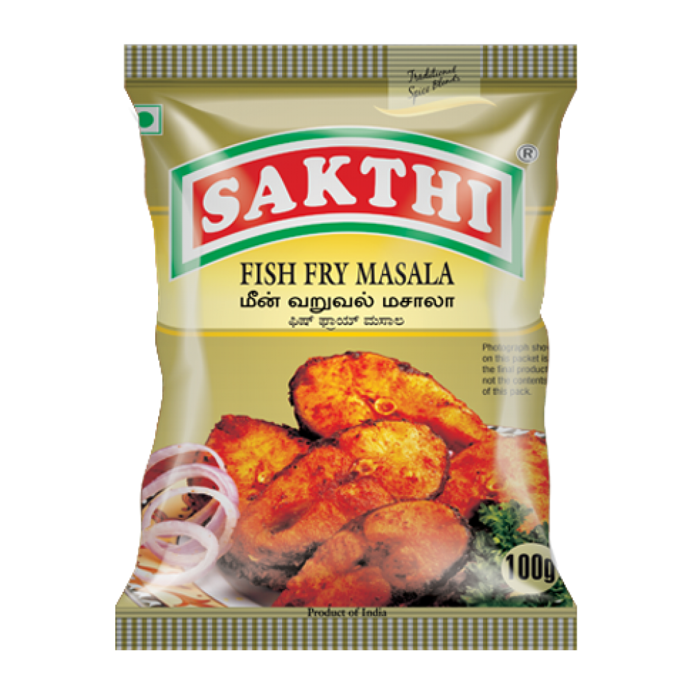 Sakthi Fish Fry Masala is a pre-packaged spice mix specifically formulated to simplify the preparation of fish fry, a popular dish in Indian cuisine. This spice blend contains a precise combination of ground spices and herbs, carefully selected to enhance the flavor and aroma of the fried fish.